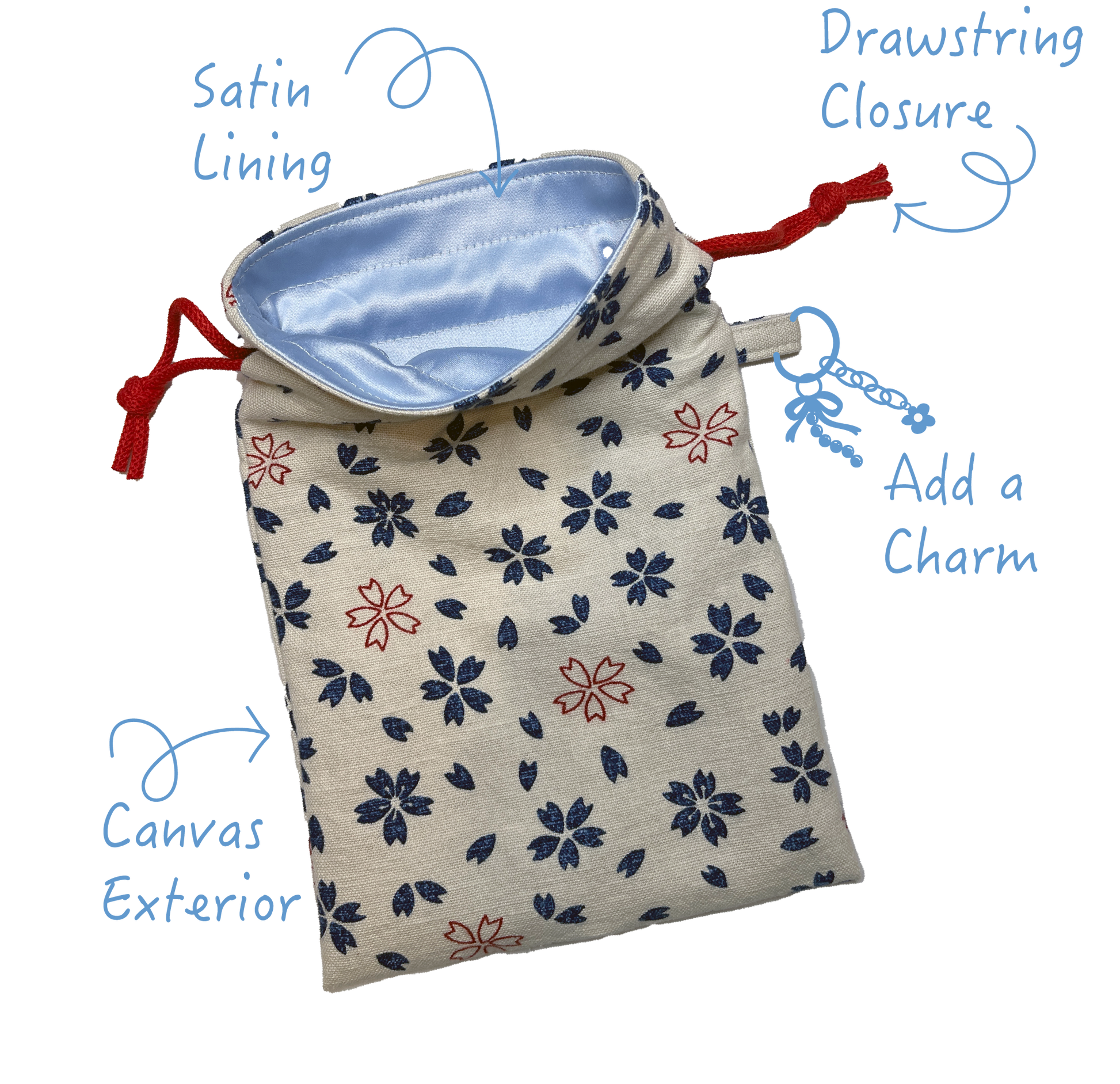 Keep your intimate items safe and organized with this simple yet thoughtful storage bag. The cotton canvas exterior looks like any typical drawstring bag, while the soft satin interior keeps everything protected and feeling luxurious. Perfect for all your intimate accessories and charge cords.